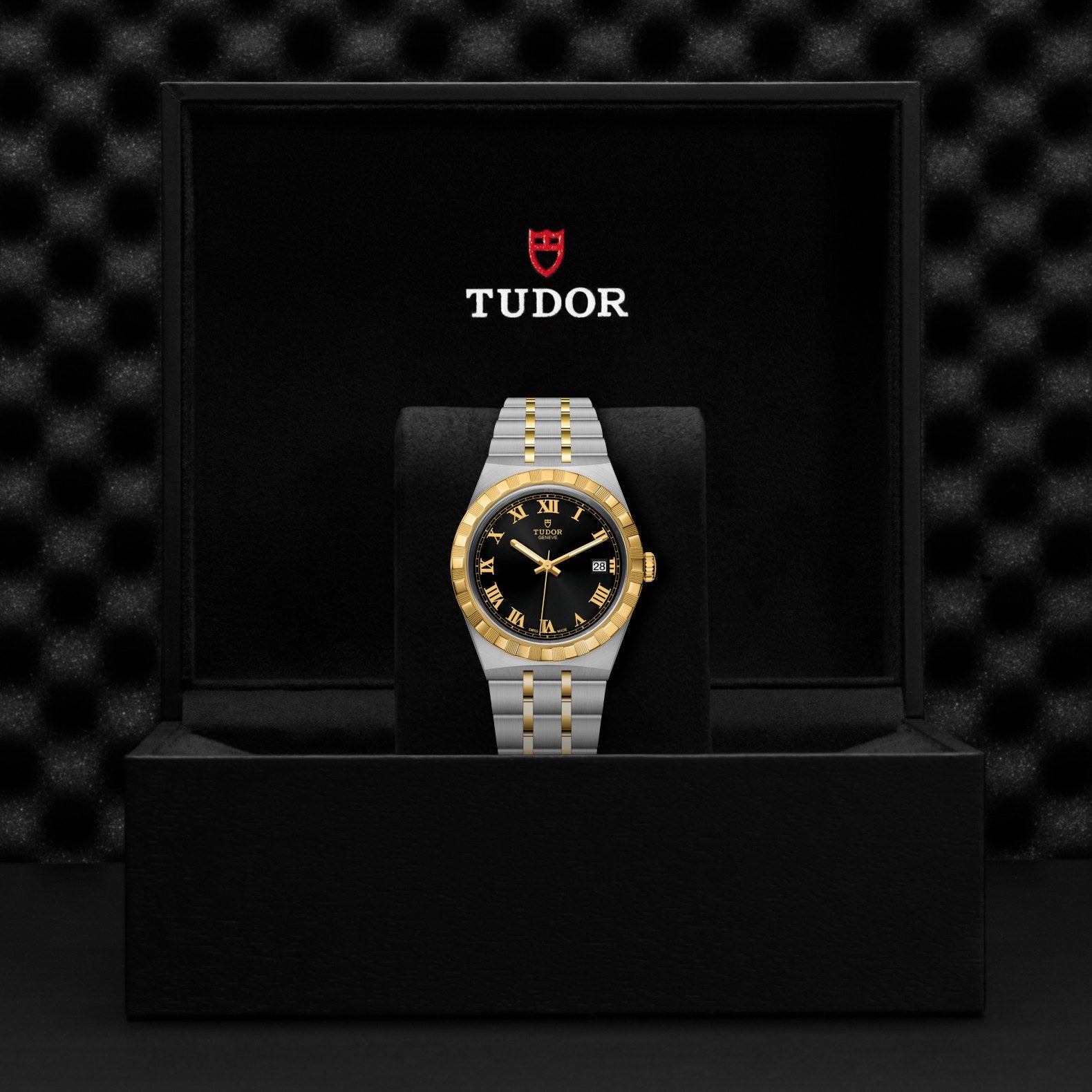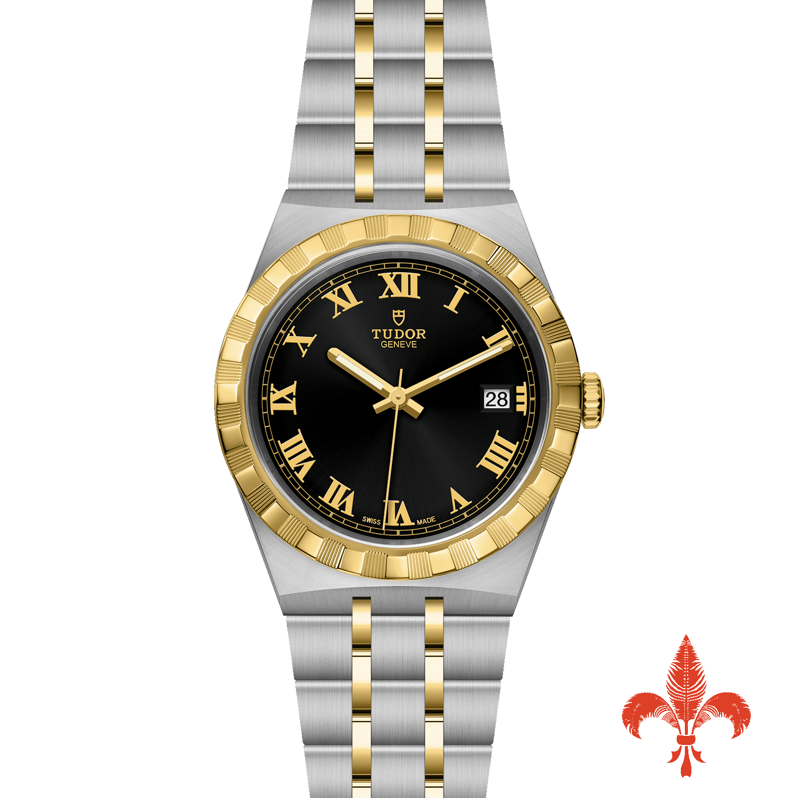 Screw-down winding crown with the TUDOR logo. Steel covered by a 0.1mm 18 ct yellow gold cap